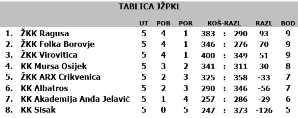 ŽKK ARX Crikvenica 24 (1. turnir) 14 (2. turnir) 38 (ukupno)